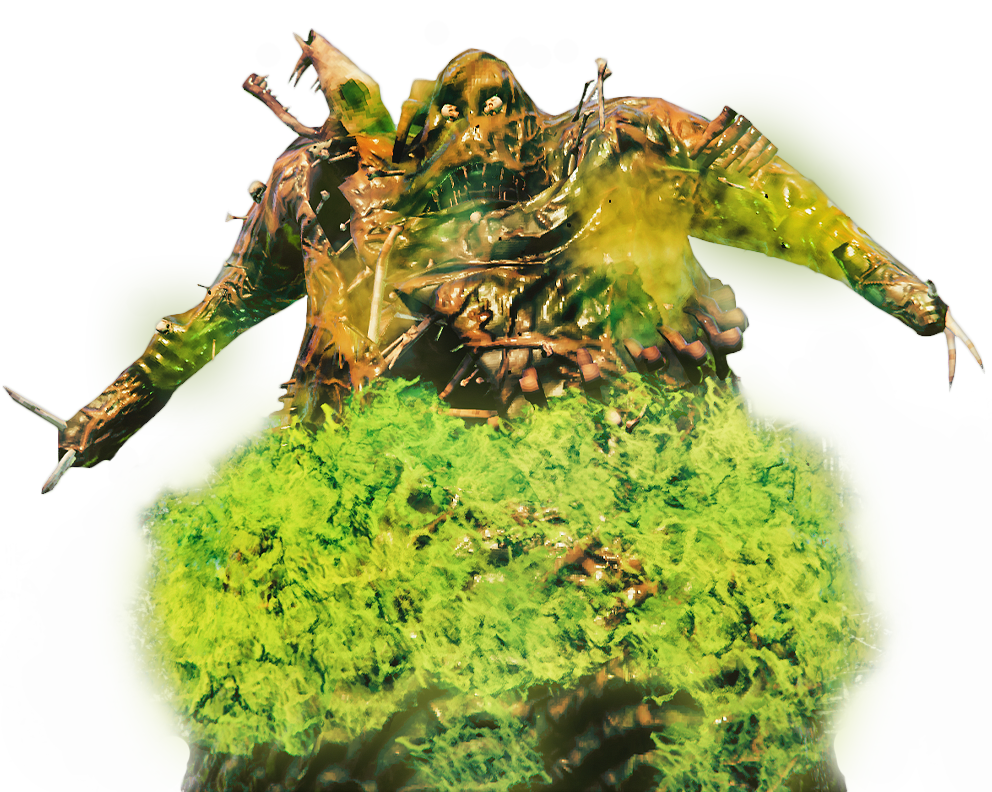 - A minion summoning ability where green orbs shoot from his head in a circle around him and spawn Summoned Charred Warriors and Marksmen wherever they land. The orbs can knock back the player if they hit but will not deal damage. These summoned enemies have significantly less health than their regular Ashlands counterparts, and take friendly fire damage from Fader's other ranged attacks. They are also colored green to distinguish them from normal variants. Indicated by Fader tilting his head at the ground followed by a long roar.